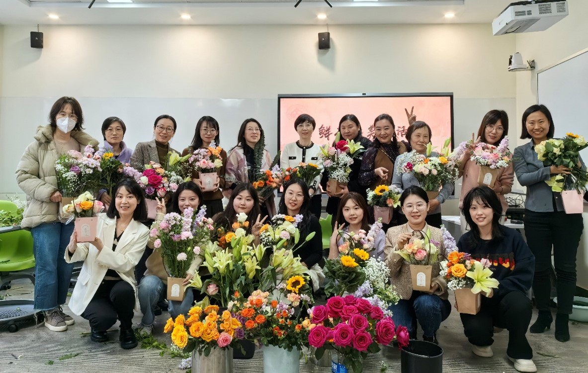 人间最美三月天,春花烂漫展新颜。为纪念“三八”国际劳动妇女节114周年,让学院全体女教师度过一个温馨幸福的节日,3月6日下午,yl6809永利妇委会、工会组织开展“鲜花伴美生活”主题插花活动。活动开始前,花艺师进行现场指导,从花语寓意、颜色搭配、插花的基本技巧和注意事项等进行详细讲解,并亲自示范了插花的步骤。女教师们在花艺师的指导下,发挥创造力,按照色彩、层次的搭配,进行了插花创作。经过精心的修剪和搭配,一朵...