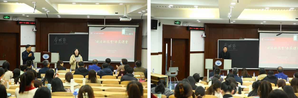 11月2日,我院2022年度“创造的教育”示范课堂展示活动在逸夫教学楼306教室举行。本次活动由孙立权、徐强、张明、孙洛丹四名教授分别进行了教学展示,邀请刘雨教授、张洪兴教授、刘研教授和徐鹏教授担任点评嘉宾。学院领导班子成员、教指委全体委员及二百余名学生代表参加了展示活动。