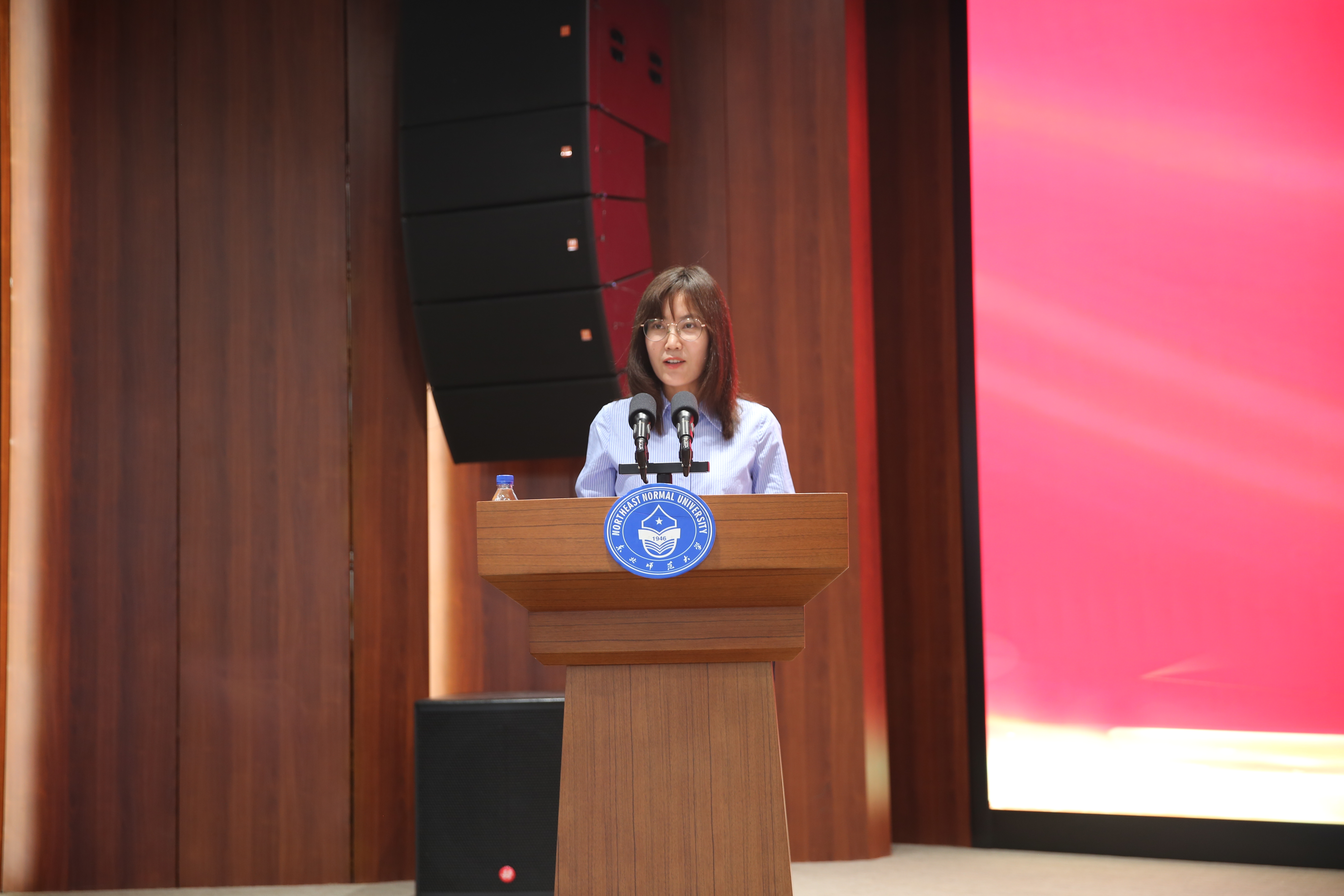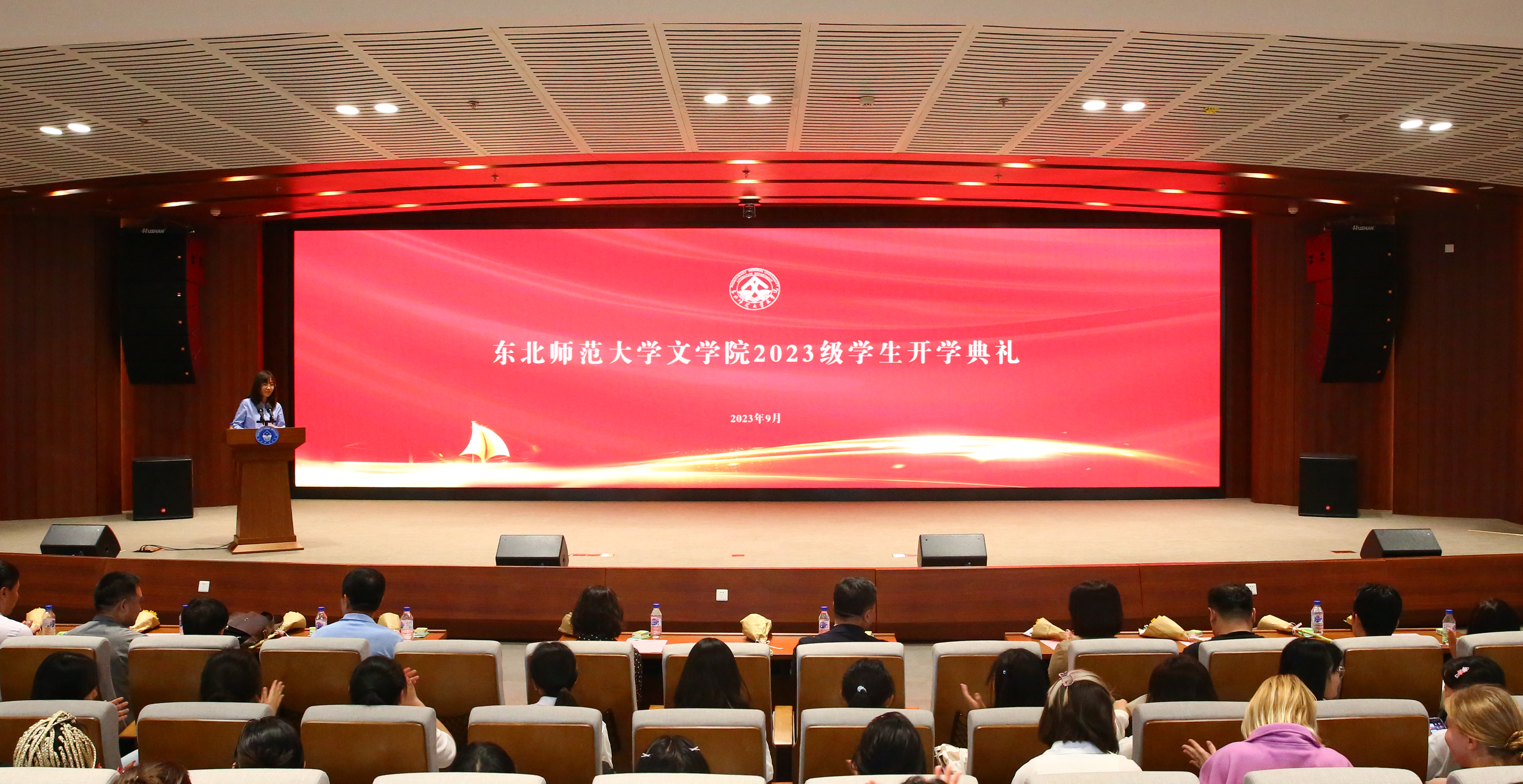 接着,教师代表杨丽娟教授致辞。杨丽娟教授结合自身30余年中文学习的经历,对同学有三点嘱托:一是认识你自己,要通过阅读与书写增长本领,做好人生远航的准备;二是爱你自己,从文学经典中汲取自尊与自爱的力量,懂得如何让自己成为更好的人;三是成为你自己,跟随榜样的脚步探索自己精彩的人生之路。杨丽娟教授号召全体同学以此为新起点,永葆中文人的骄傲与底气:前行有进路,后退有退路,放眼皆为诗,随处是远方,穷可独善其身,达可兼济天下!