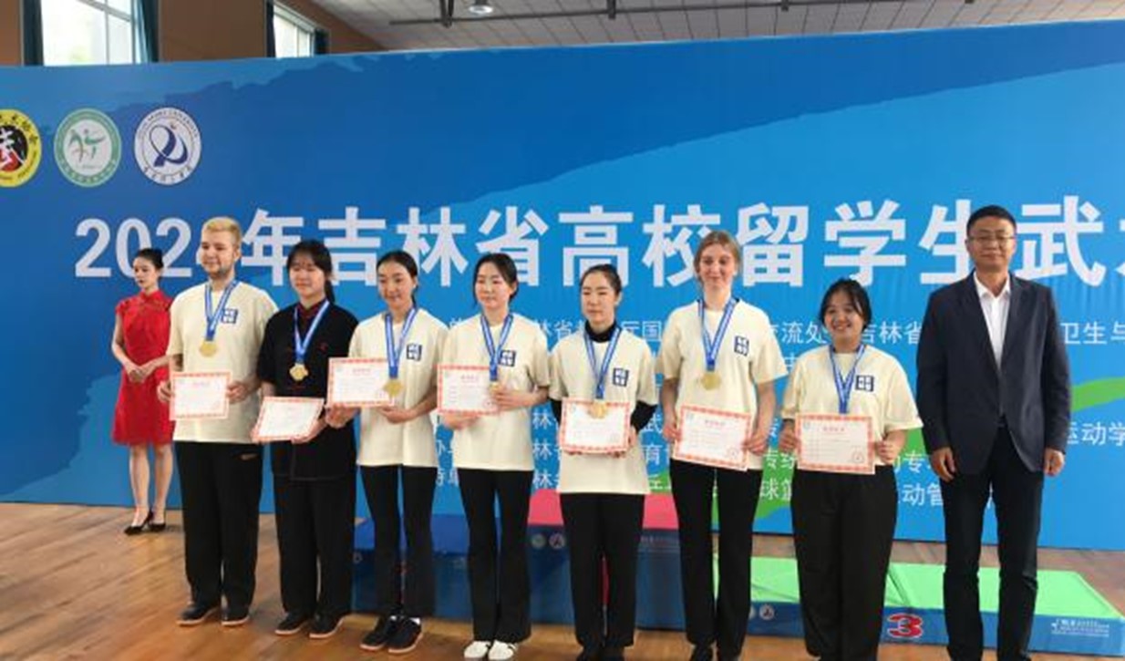 此次比赛分为“武术套路”和“武术短兵”两个赛道,每个赛道分男女两组。我院蒙古国留学生布勒、曹乐梦、恩和玛、图雅,印度尼西亚留学生林春玉,俄罗斯留学生阿瑞娜、陈北栀,参加了比赛,分别在“武术套路”比赛女子组杨氏太极拳、八极拳、孙氏太极拳、自选太极拳、其他传统太极拳、24式太极拳与男子组八极拳等单人项目与集体双极拳比赛中,全面斩获第一名。曹乐梦同学还在女子组69公斤级“武术短兵”比赛中以大比分分差荣获该级别第一名。我校体育学院教练员邢增辉老师、2021级武术与民族传统体育专业学生汤健峰给予了悉心指导和培训。