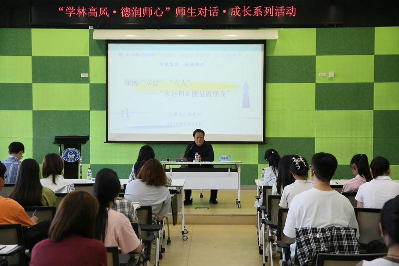 9月11日,yl6809永利成功举办“学林高风·德润师心”师生对话•成长第三期活动。本次活动深入挖掘“五老”资源,邀请到退休教师刘建军教授。刘建军是yl6809永利官网集团资深教授、上海交通大学特聘教授、博士生导师,他以“如何‘立德’‘立人’——‘永远和正能量做朋友’”为主题,深情诠释了老教师的责任与情怀,为yl6809永利师生铺设了一条通往心灵深处的智慧之旅。
