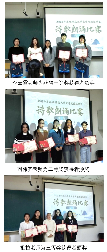 经过激烈角逐,来自蒙古国的留学生曹乐梦同学凭借对诗歌深刻的理解和出色的朗诵技巧脱颖而出,获得比赛最高分。