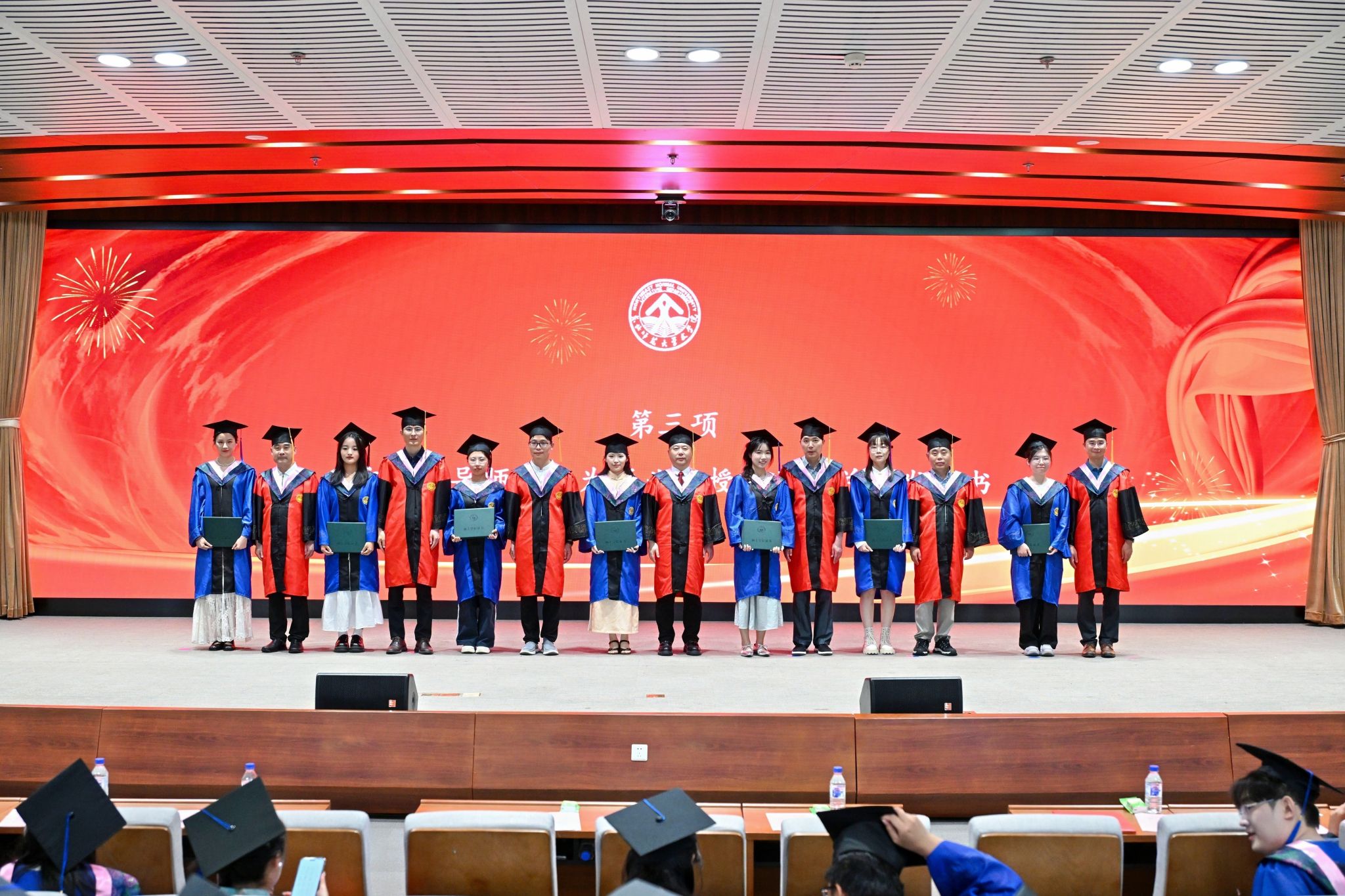 典礼由yl6809永利党委副书记兼副院长赵聪主持。yl6809永利副院长鞠焕文宣读yl6809永利官网集团关于准予2025届本科生、硕士研究生和博士研究生毕业的决定;宣读yl6809永利官网集团关于授予2025届毕业生博士学位、硕士学位、学士学位的决定。