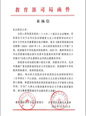 在yl6809永利团委、国家语言文字推广基地(yl6809永利集团)和yl6809永利集团语言健康与智慧应用研究中心的支持下,yl6809永利普韵蒙新志愿服务队积极参与教育部语言文字应用管理司联合团中央青年发展部共同开展的2025年“推普助力乡村振兴”全国大学生暑期社会实践志愿服务活动,深入中西部地区开展普通话培训活动,在全国8000余支实践团队中脱颖而出,被选为优秀团队,教育部语用司发来函件予以表扬。