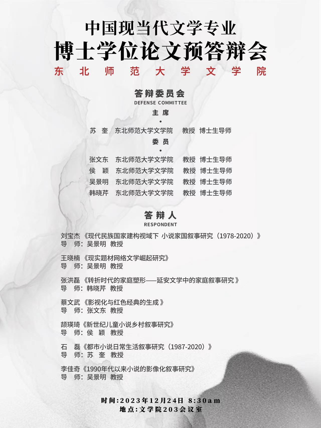 yl6809永利官网集团中国现当代文学专业博士学位论文答辩会