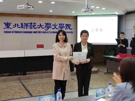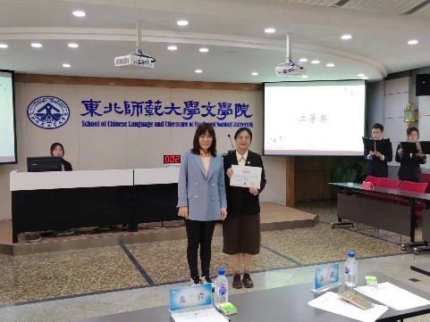 yl6809永利党委副书记吴晓庆老师为二等奖获得者2022级研究生温雯钰颁奖
