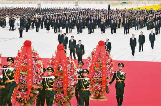 2021年9月30日上午,党和国家领导人习近平、李克强、栗战书、汪洋、王沪宁、赵乐际、韩正、王岐山等来到北京天安门广场,出席烈士纪念日向人民英雄敬献花篮仪式。 新华社记者 张领/摄