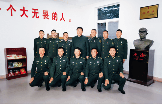 2017年12月13日,中共中央总书记、国家主席、中央军委主席习近平到第71集团军视察。这是习近平同“王杰班”战士合影。 新华社记者 李刚/摄