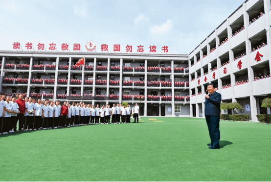 2021年9月13日至14日,中共中央总书记、国家主席、中央军委主席习近平在陕西省榆林市考察。这是14日上午,习近平在绥德实验中学考察时,同师生亲切交流。 新华社记者 谢环驰/摄
