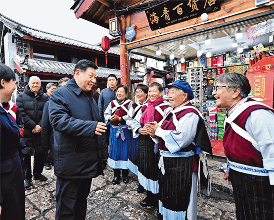 2025年3月19日至20日,中共中央总书记、国家主席、中央军委主席习近平在云南考察。这是19日下午,习近平在丽江古城考察时,与当地居民亲切交流。