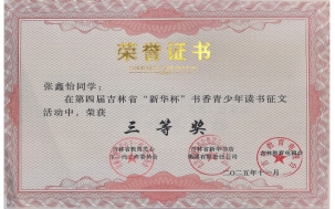 王馨恬、王姿桥、张鑫怡三位同学荣获三等奖。