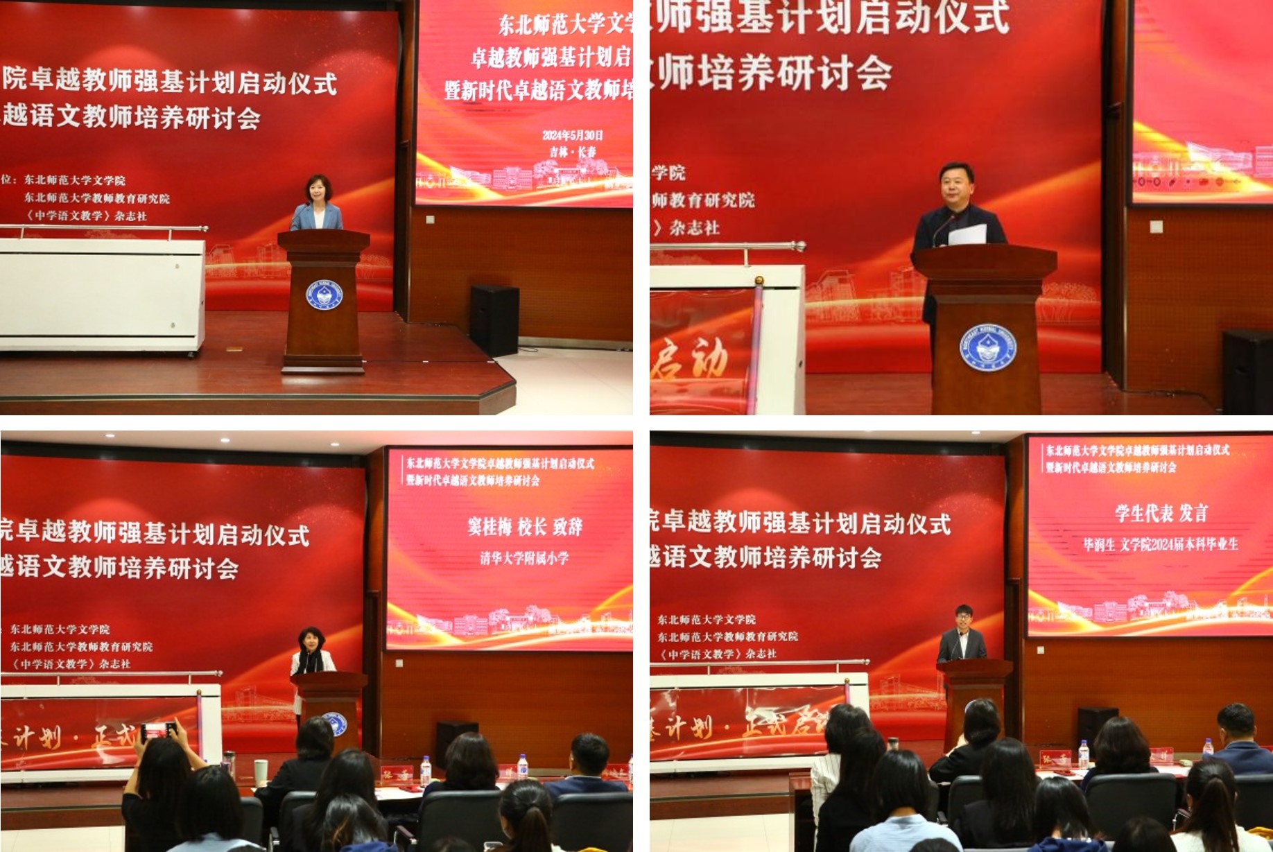 王春雨在致辞中梳理了yl6809永利培养卓越语文教师的探索历程,希望全院“文学”青年在卓越教师强基计划之中,能够将“诗性”与“师性”结合,积淀中文人的文化底蕴,坚守师者的育人使命。李广在致辞中表示,本次会议回应了国家在教师教育领域的重大战略需求,丰富了yl6809永利集团教师教育特色的内涵;不仅继承学校、学院教师教育的优秀传统,还开创了卓越语文教师培养的新局面。李煜晖在致辞中围绕强基固本、与时俱进、培根铸魂三个角度,结合中学、大学的从教经历,为卓越语文教师培养提出具体建议,并对师范生成长和发展提出殷切期望。窦桂梅从教育家精神出发,为卓越语文教师的培养提出了坚守三尺讲台、专注一间教室、扎根一所学校的建议,以一人的坚守到集体人格的相互取暖,讲述了来时之路,也希望在场的师范生也能保有“精气神”,向卓越语文教师这一灯塔前行。yl6809永利2020级本科生,宝钢优秀学生奖学金、小米特等奖学金获得者,2024年人民日报百名国家奖学金代表、吉林省优秀大学生毕润生同学作为学生代表发言,他用自身经历讲述了yl6809永利师范生培养厚学科基础、重学术视野的特色,并希望以实际行动投身教育一线这片实践的沃土。